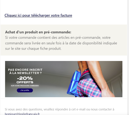 Invoices are never included in the package—they can always be downloaded directly from your order confirmation email. You’ll find a clickable link in that email.