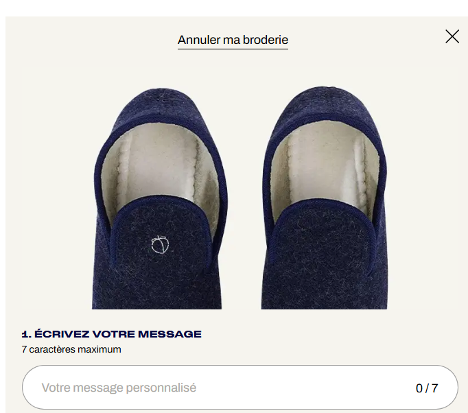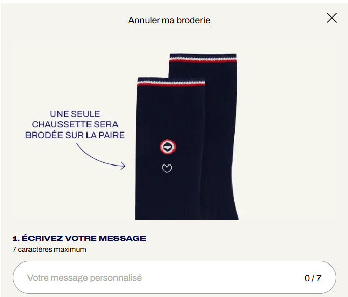Pour les chaussettes et les chaussons, une seule sera brodée sur la paire, exemple :