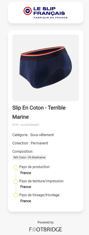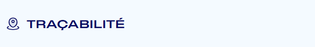 Sur chaque fiche produit, vous pouvez consulter l’onglet « Traçabilité » en un clic, vous accédez à une carte claire et détaillée de toutes les étapes, jusqu’au produit fini.